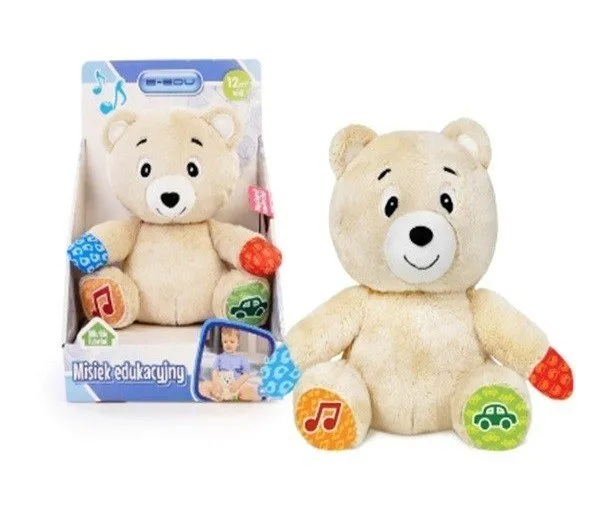 Miś Pluszowy Interaktywny E-Edu to niezwykły pluszak, który po naciśnięciu na prawą nóżkę odtwarza aż 6 uroczych piosenek, które na pewno rozświetlą każdy dzień Twojego dziecka. A to jeszcze nie koniec! Po naciśnięciu na lewą nóżkę, miś recytuje wierszyki i krótkie frazy o onomatopejach. Dodatkowo wydaje dźwięki, co sprawia, że staje się jeszcze bardziej interaktywny i atrakcyjny dla maluchów.